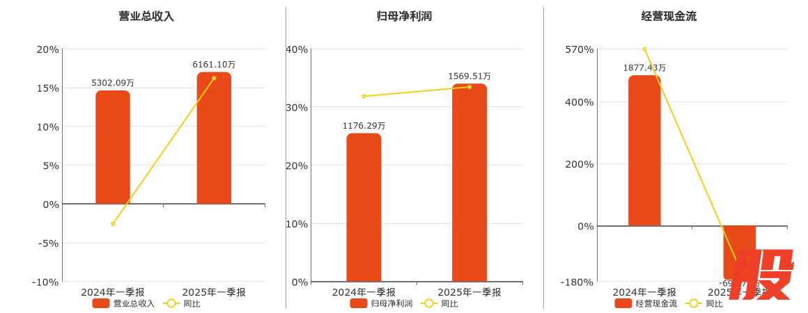 公司营业总收入为6161.10万元。归母净利润为1569.51万元。经营活动现金净流入为-692.70万元,较去年同报告期经营活动现金净流入减少2570.13万元,同比较去年同期下降136.90%。