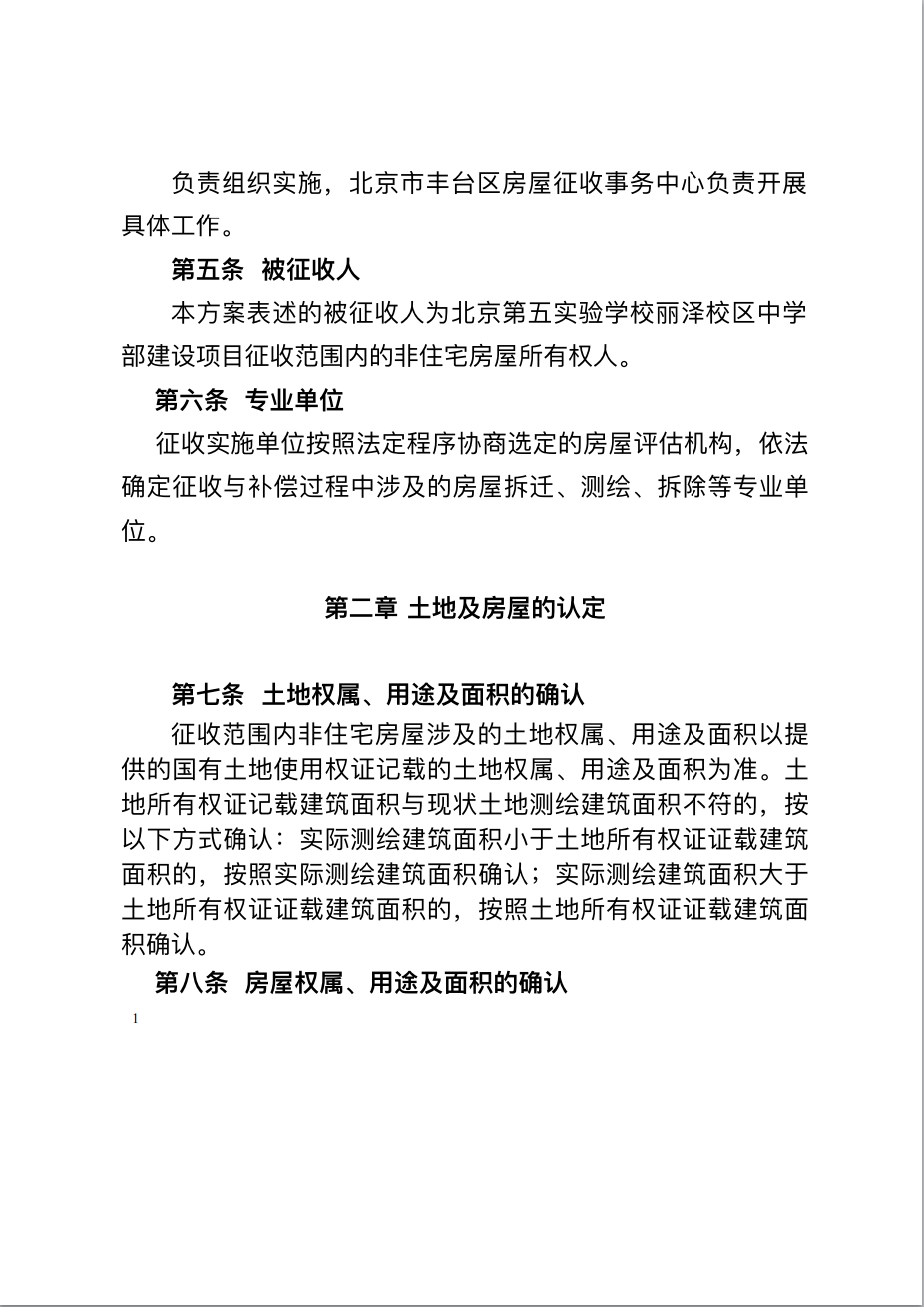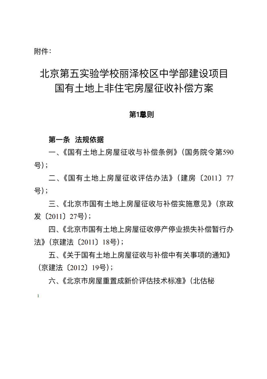 同时发布的还有《北京第五实验学校丽泽校区中学部建设项目国有土地上非住宅房屋征收补偿方案》。